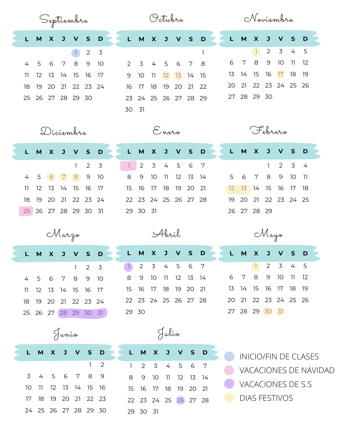 En Mofletes damos inicio al curso escolar el 1 de septiembre y lo acabamos el 26 de julio.